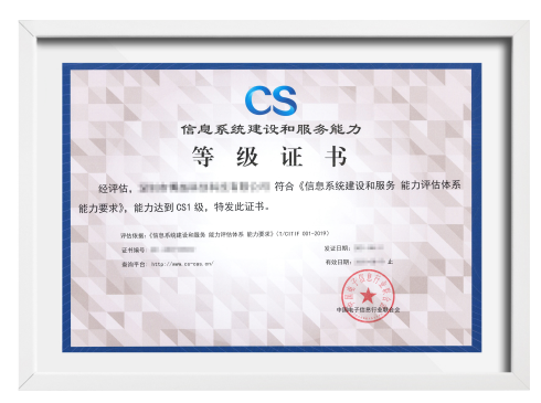 信息系统建设和服务能力划分为五个等级,等级从低到高分别用CS1级(初始级)、CS2级(基本级)、CS3级(良好级)、CS4级(优秀级)、CS5级(杰出级)。